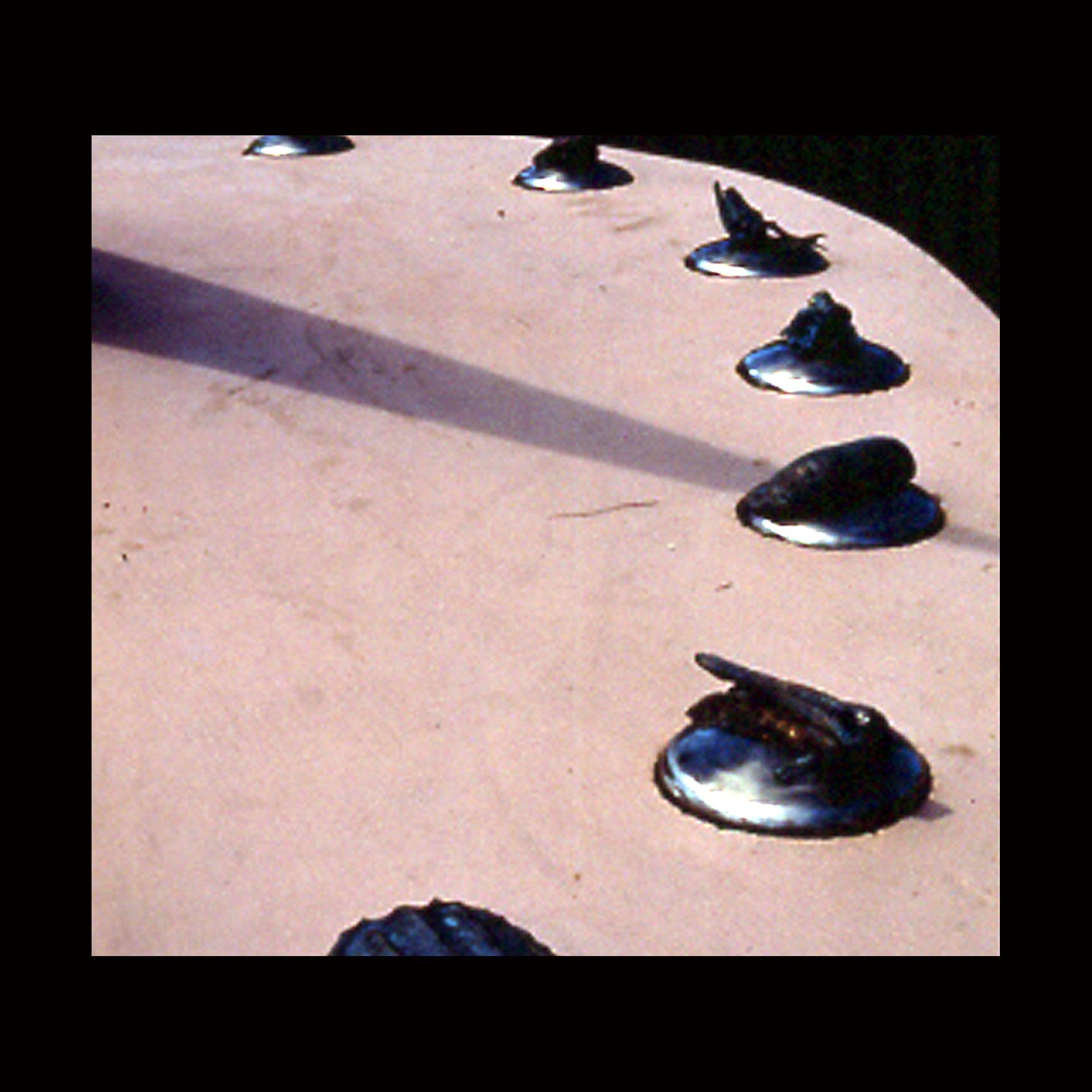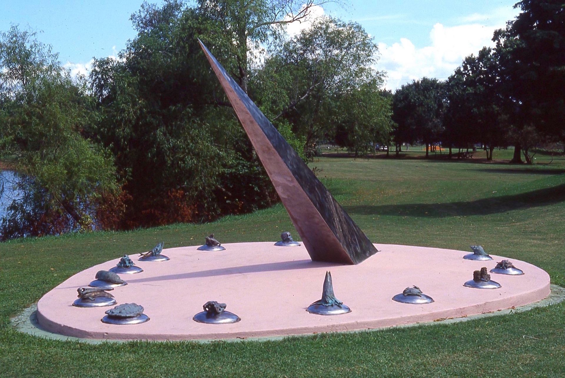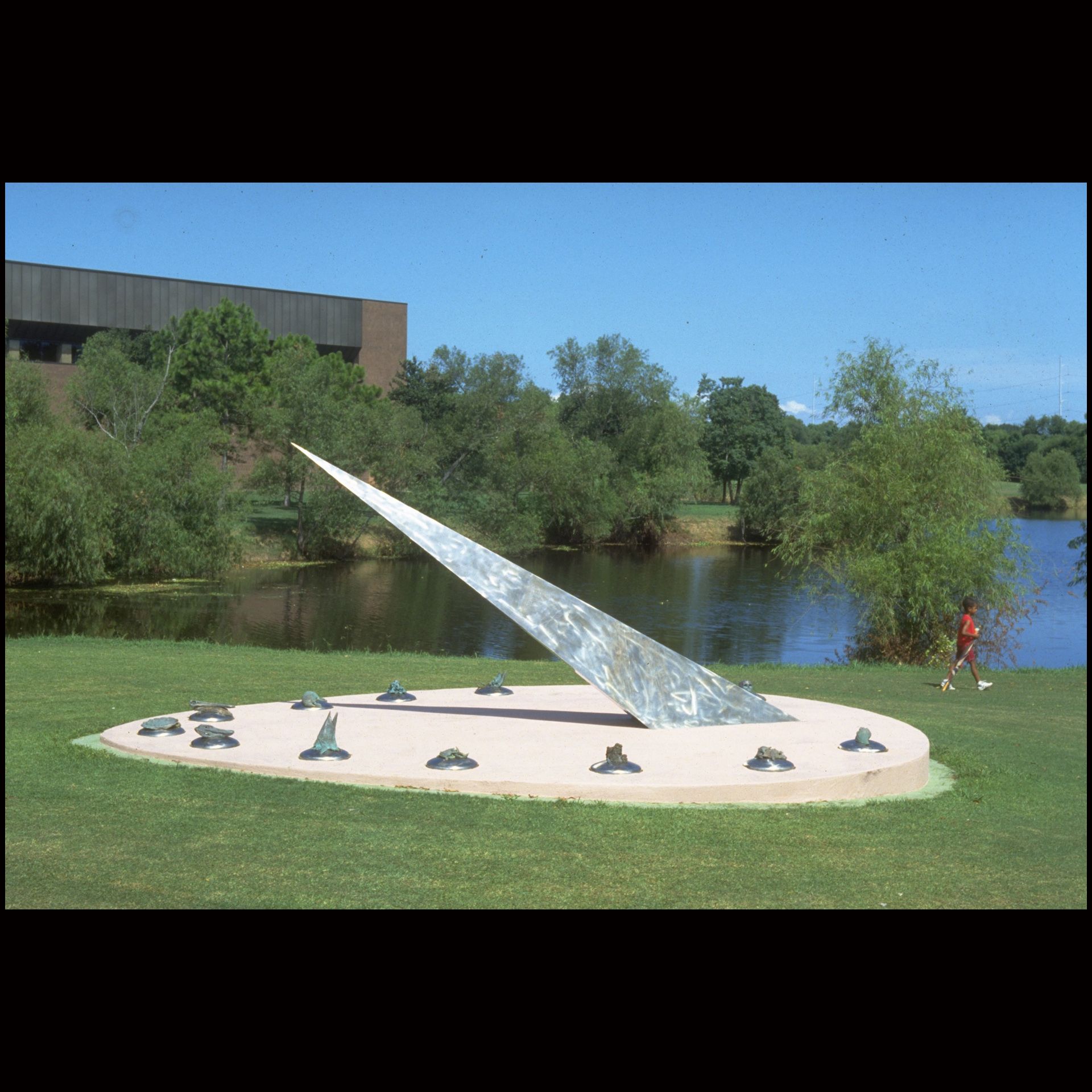 Sundial in stainless steel and cast concrete, for public park and nature center, hours of the day indicated by cast bronze bones, skulls, and shells of indigenous Gulf Coast fauna, Client: City of New Orleans, LA